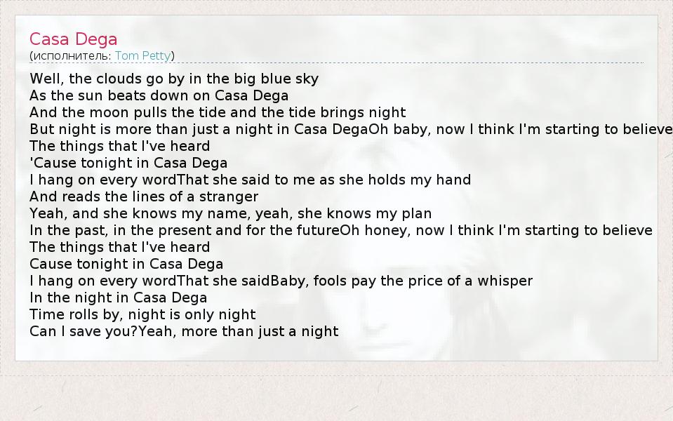 А как ты думаешь, о чем песня "Casa Dega" ?