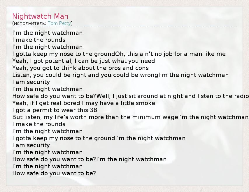 А как ты думаешь, о чем песня "Nightwatch Man" ?