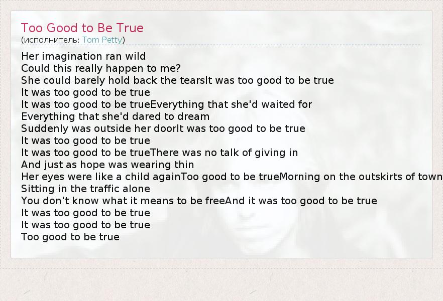 А как ты думаешь, о чем песня "Too Good to Be True" ?