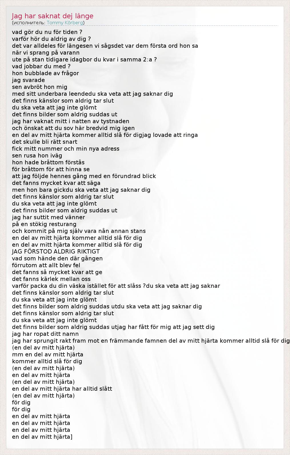 А как ты думаешь, о чем песня "Jag har saknat dej länge" ?