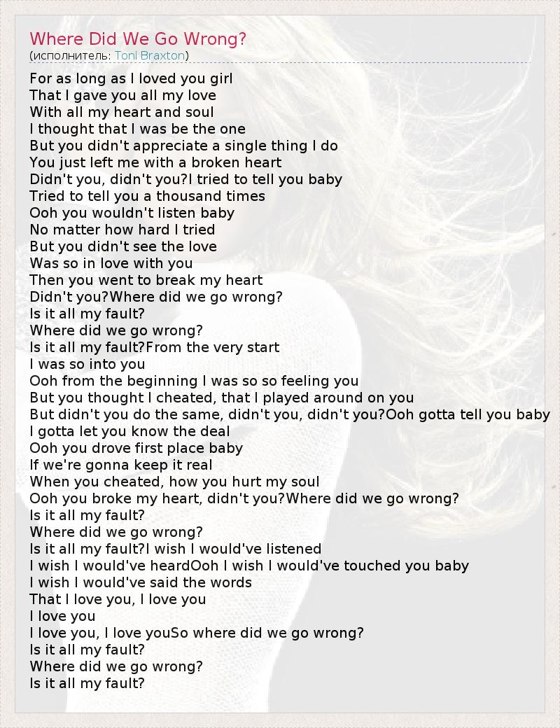 А как ты думаешь, о чем песня "Where Did We Go Wrong?" ?