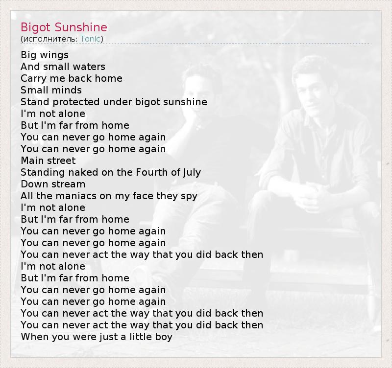 А как ты думаешь, о чем песня "Bigot Sunshine" ?