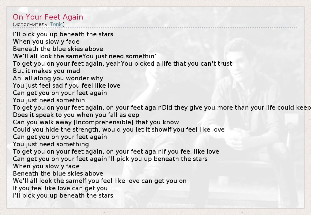 А как ты думаешь, о чем песня "On Your Feet Again" ?