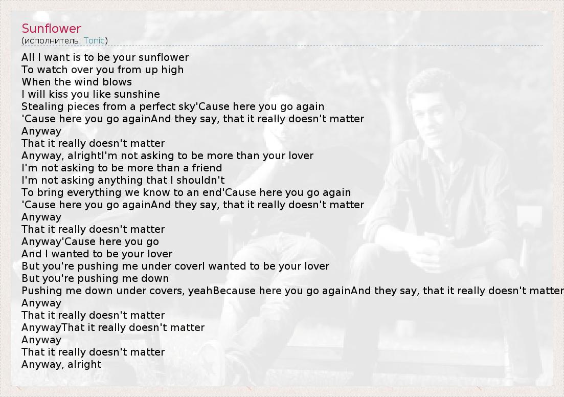 А как ты думаешь, о чем песня "Sunflower" ?