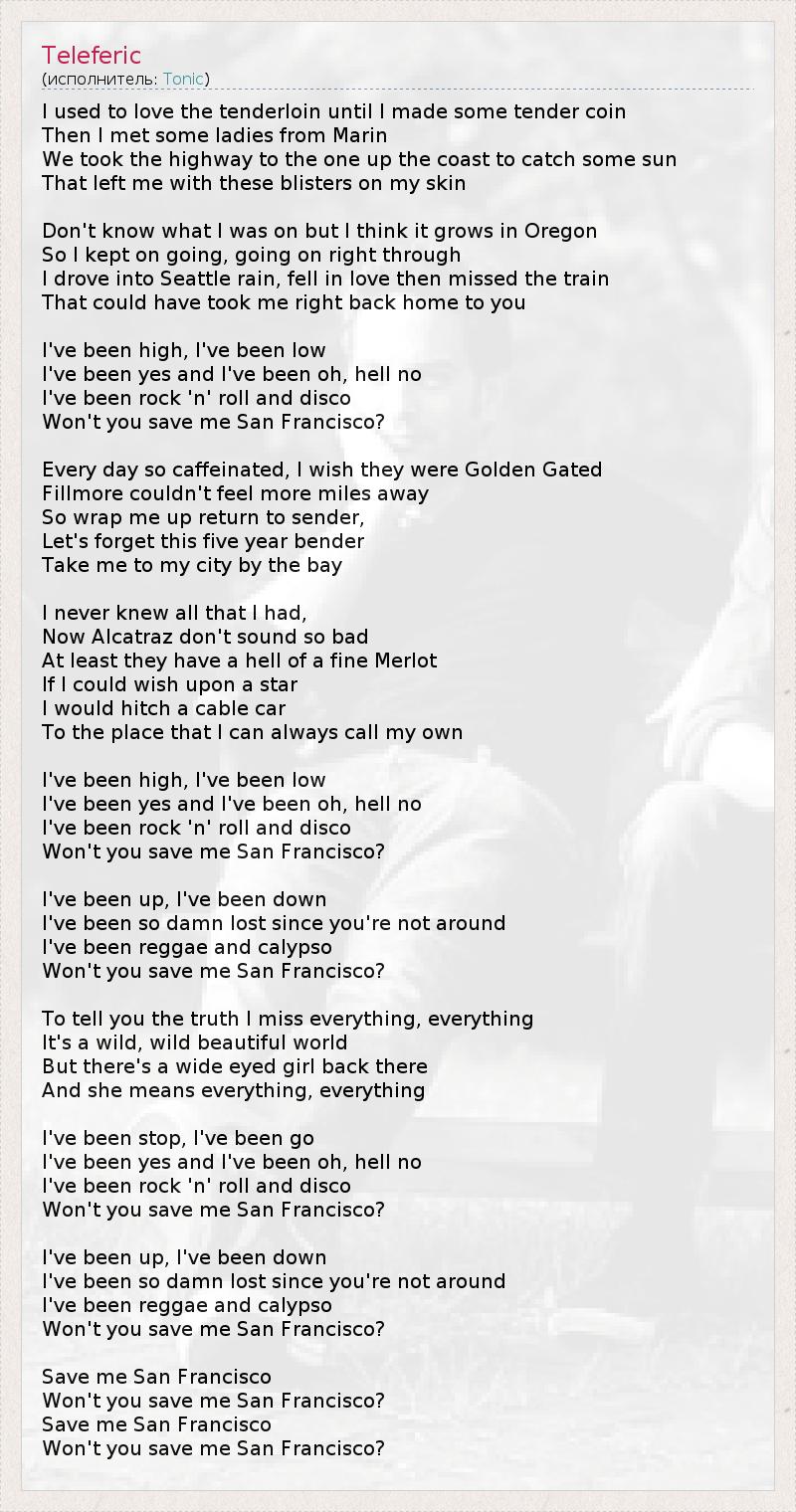Won't you save me San Francisco?