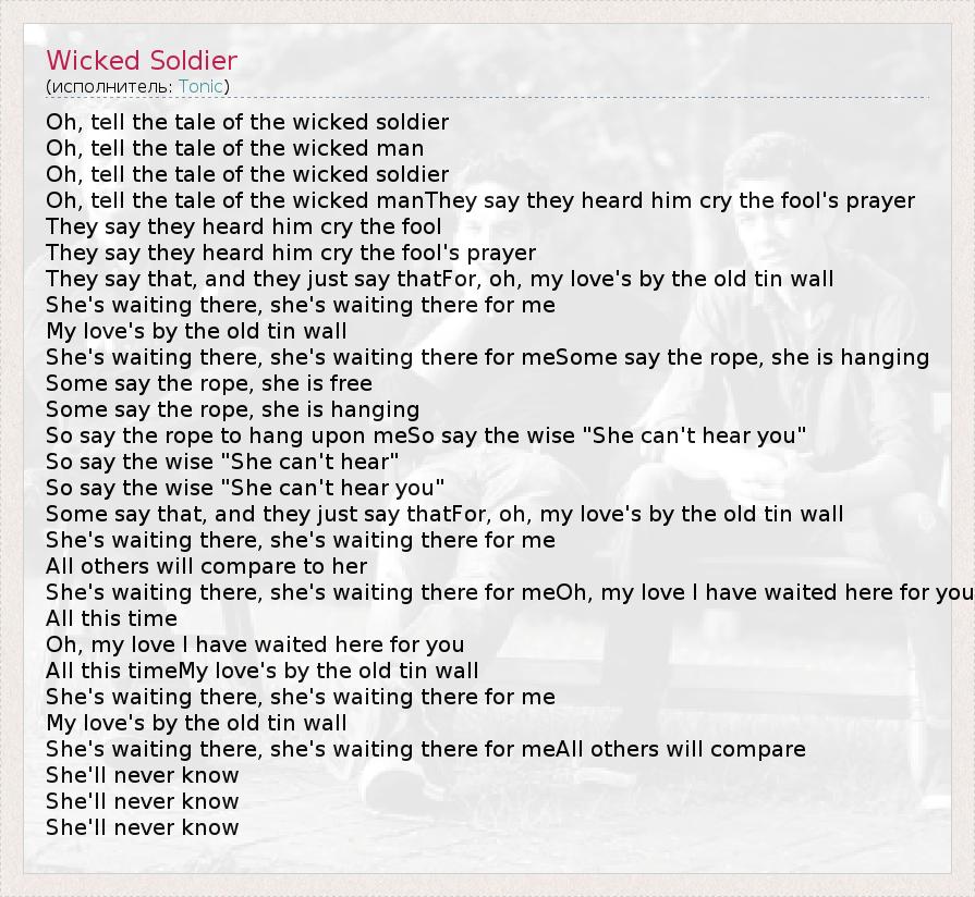 А как ты думаешь, о чем песня "Wicked Soldier" ?
