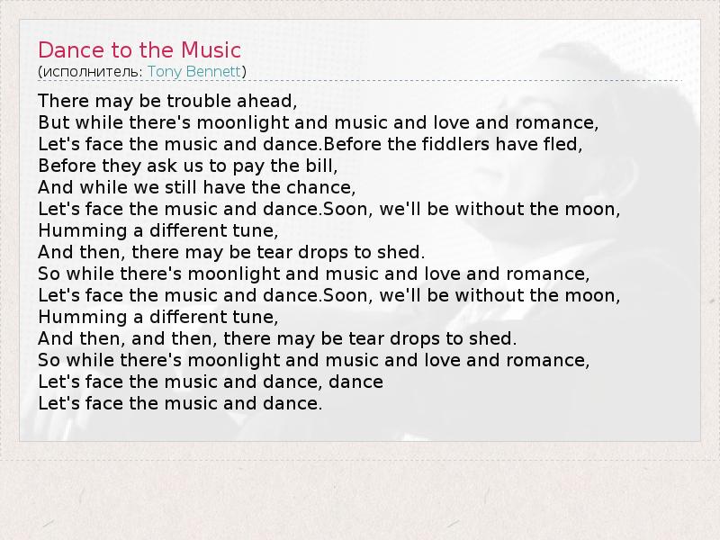 Let's face the music and dance, dance