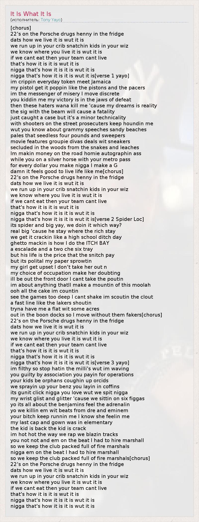 А как ты думаешь, о чем песня "It Is What It Is" ?
