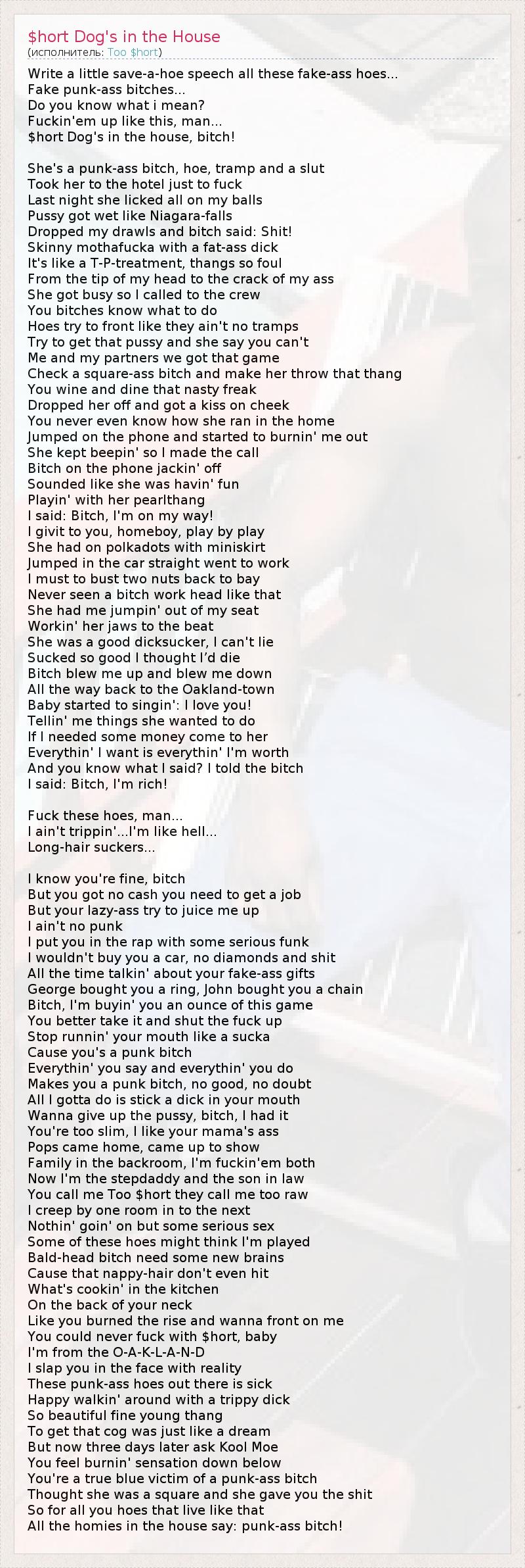 А как ты думаешь, о чем песня "$hort Dog's in the House" ?