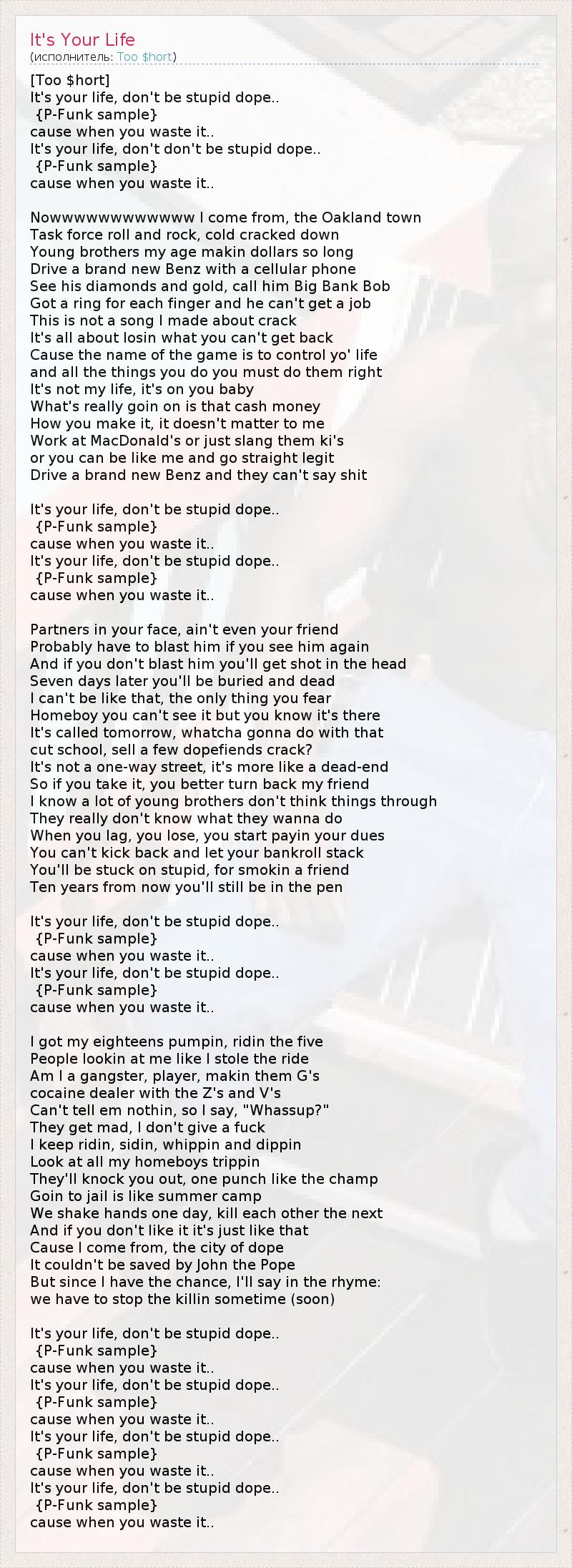 А как ты думаешь, о чем песня "It's Your Life" ?