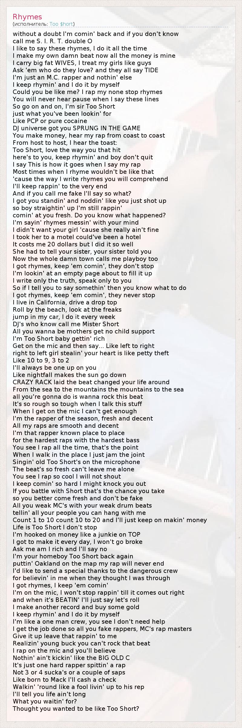 Это интересно:Too Short является выходцем из Оукленда. Стал первой рэп звездой с западного побережья, записав самостоятельно три альбома. После чего в 1988 году на крупном лейбле он выпускает свой первый альбом, достигший золотого статуса, под названием "Born To Mack". Четыре следующих альбома достигли платинового статуса. Упредив большинство будущих гэнгста рэпперов, он ограничивался рассказами о сексе... продолжение