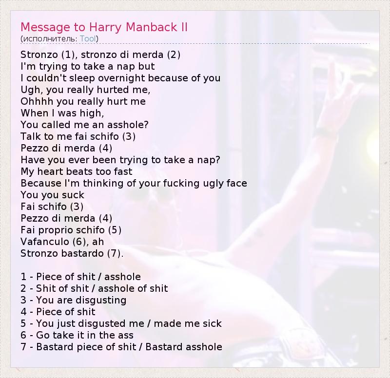 ГлавнаяИсполнителиToolMessage to Harry Manback II