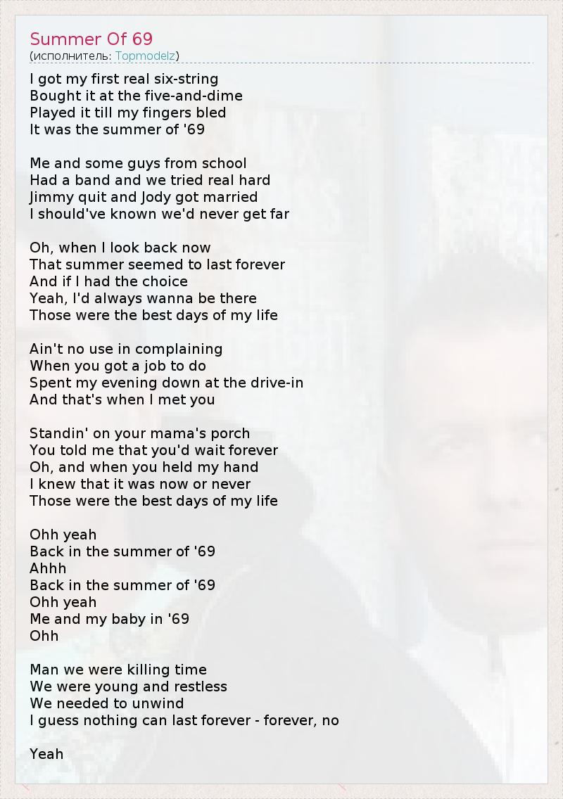 А как ты думаешь, о чем песня "Summer Of 69" ?