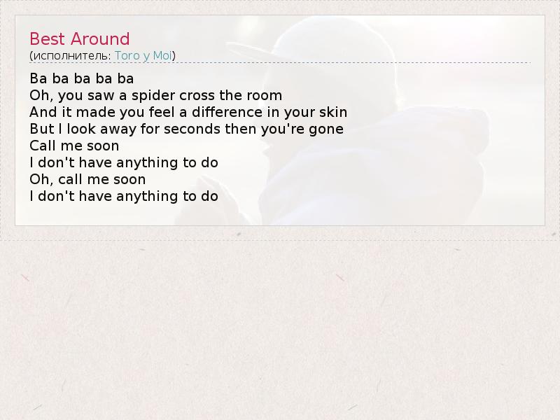 Это интересно:Чез Бандик или Toro Y Moi. Мультиинструменталист. Его музыка приобрела множество форм, когда он начал записывать свои треки, и одно время отождествлялась с chillwave-движением лета 2010 года.Название "Тоrо у Moi" может быть примерно переведено как "Бык и я".Бандик родился 7 ноября 1986 года в Колумбии, штат Южная Каролина, и учился в "Ridgeview High School", где он вместе с тремя своими одноклассниками... продолжение