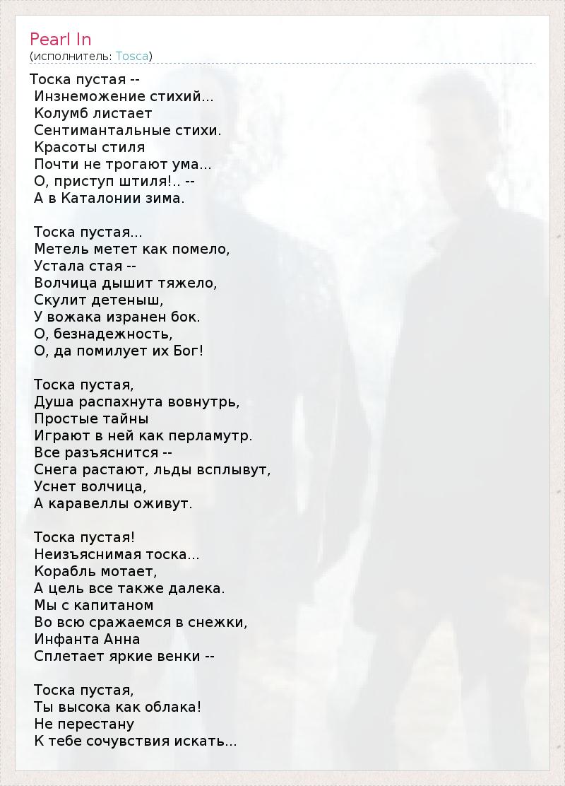 Тоска пустая...