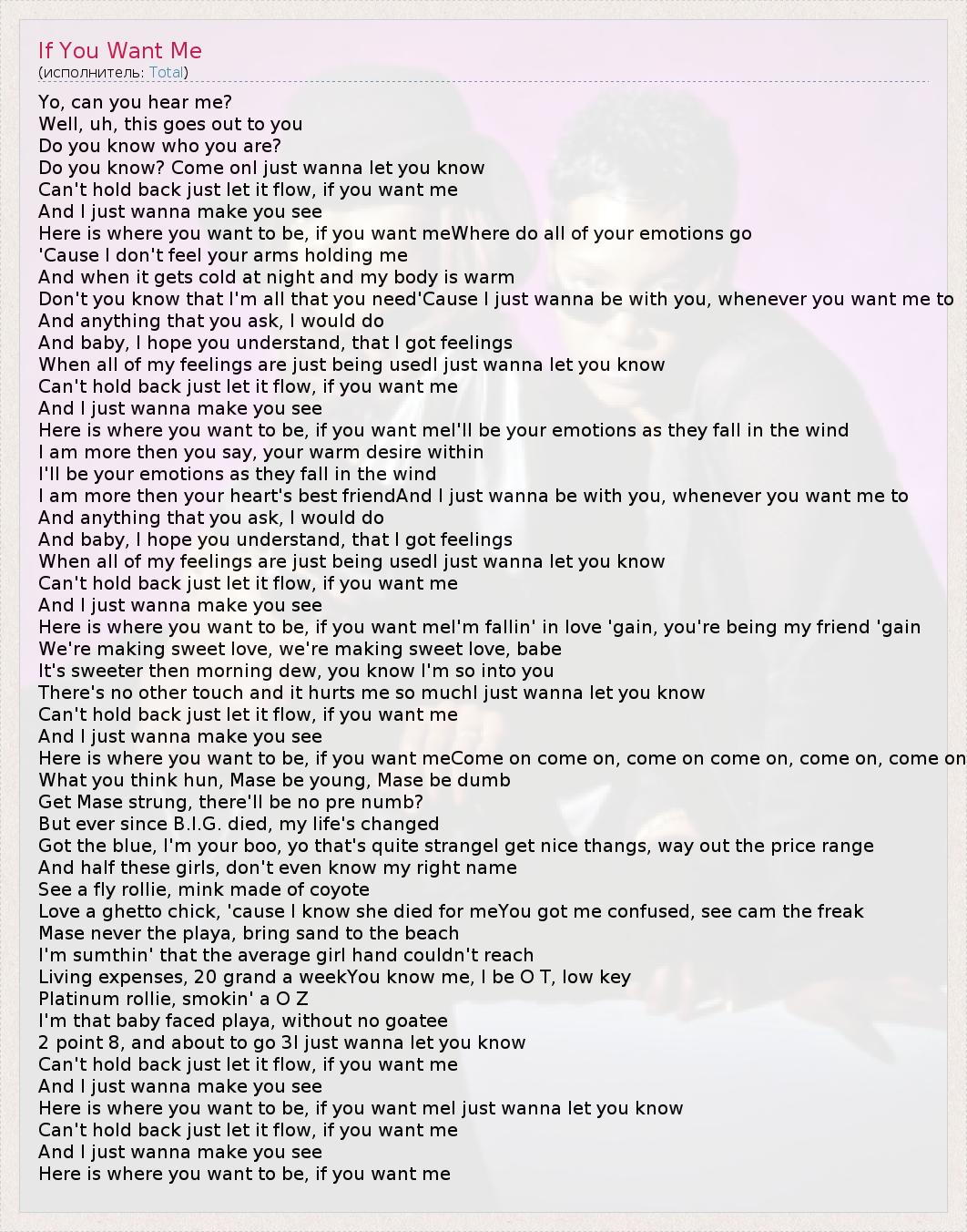 А как ты думаешь, о чем песня "If You Want Me" ?