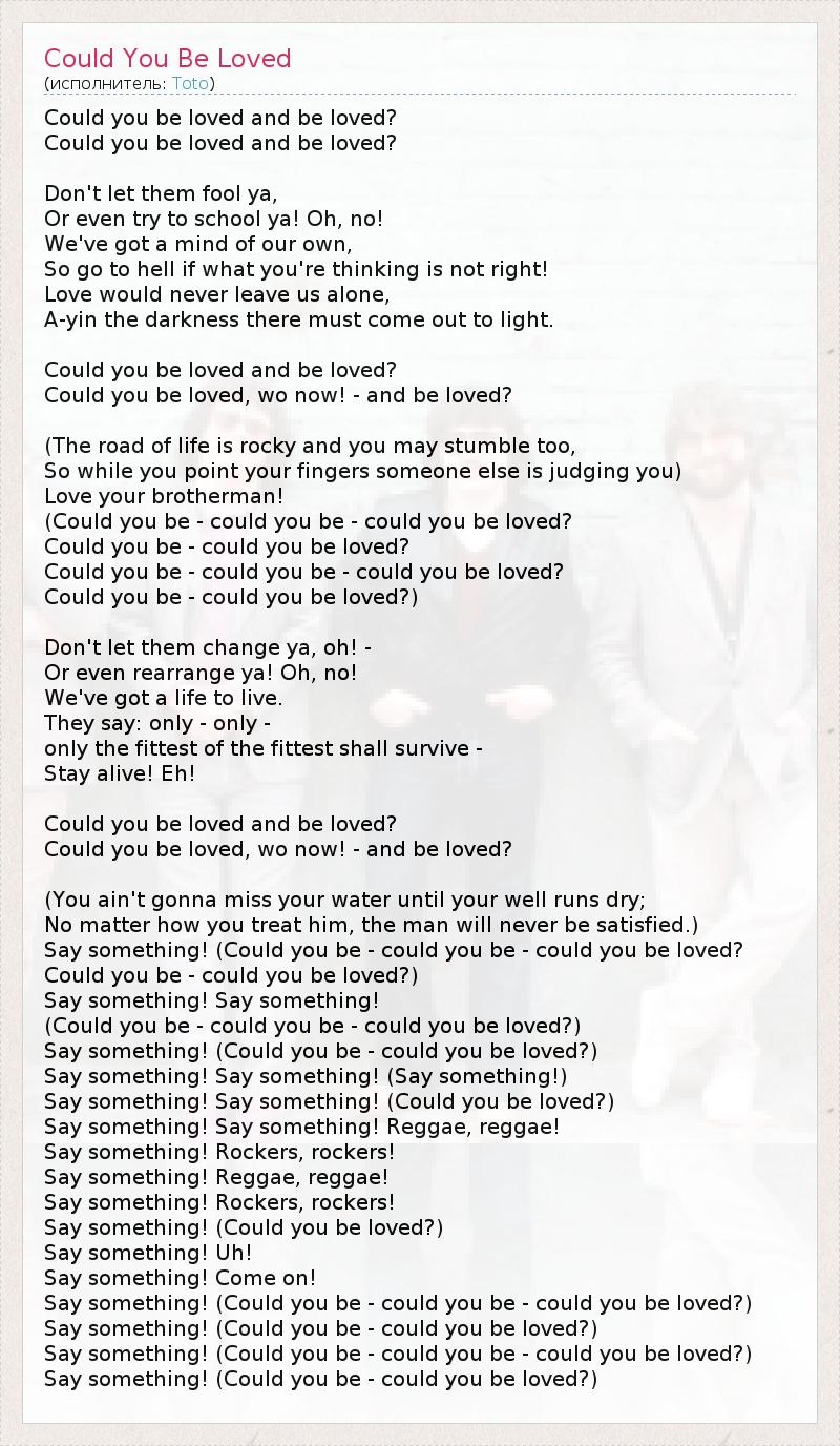 А как ты думаешь, о чем песня "Could You Be Loved" ?