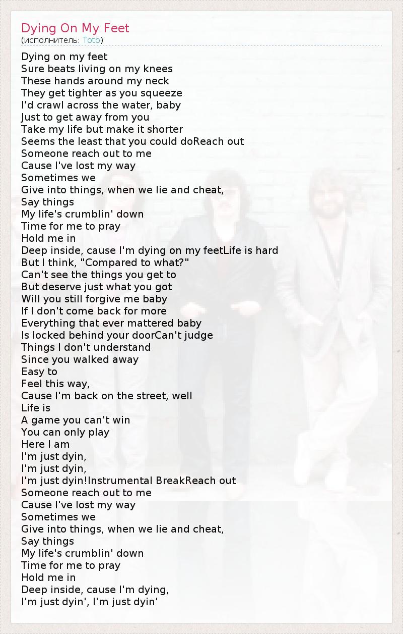 А как ты думаешь, о чем песня "Dying On My Feet" ?