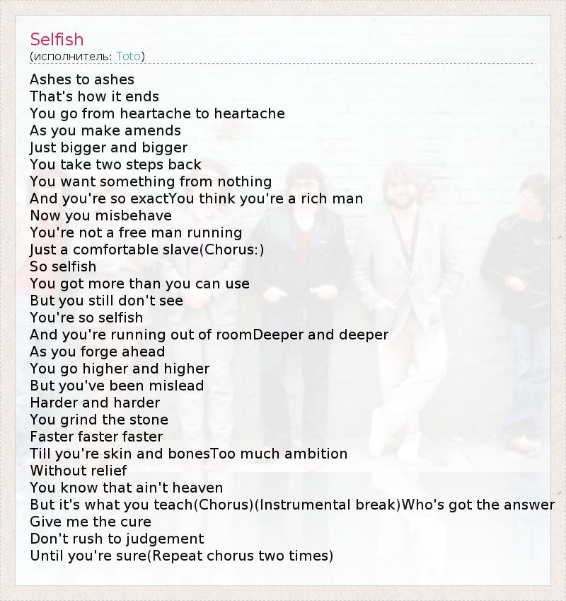 А как ты думаешь, о чем песня "Selfish" ?