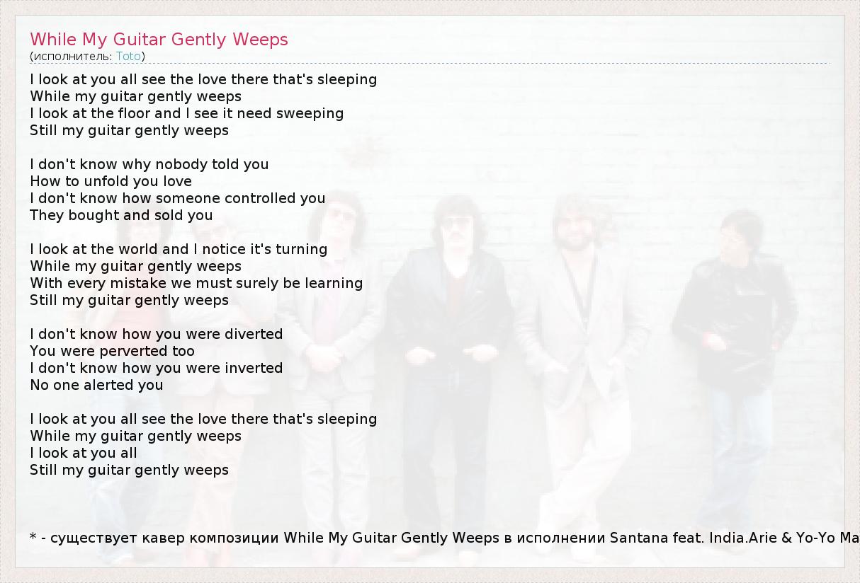 ГлавнаяИсполнителиTotoWhile My Guitar Gently Weeps