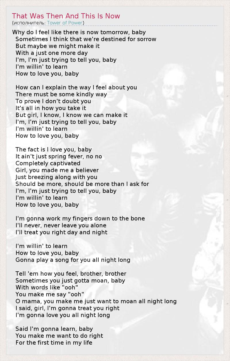 А как ты думаешь, о чем песня "That Was Then And This Is Now" ?