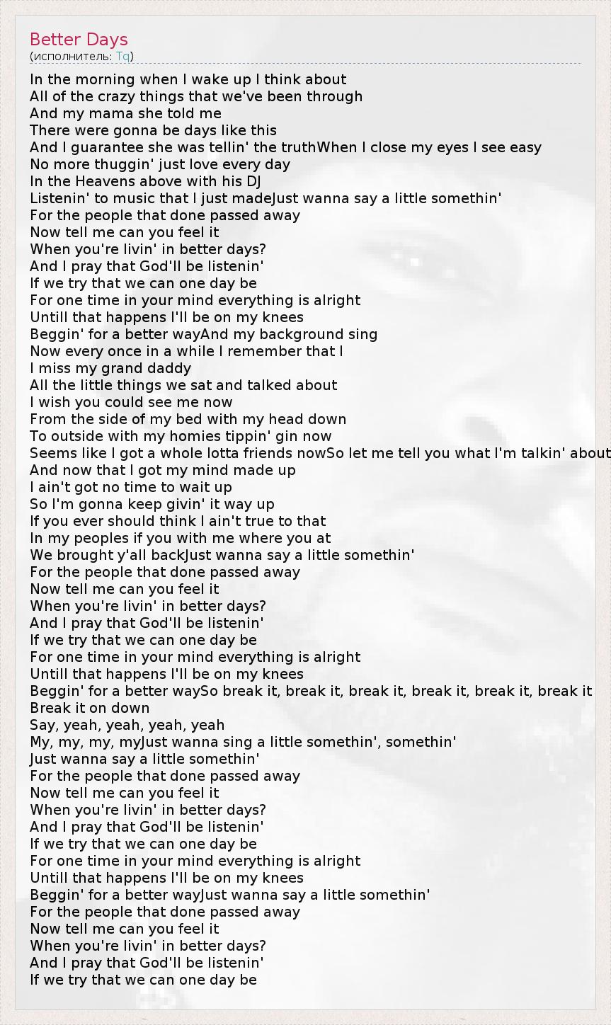 My, my, my, myJust wanna sing a little somethin', somethin'