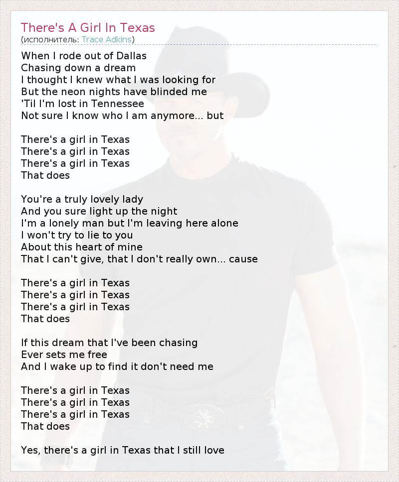 А как ты думаешь, о чем песня "There's A Girl In Texas" ?