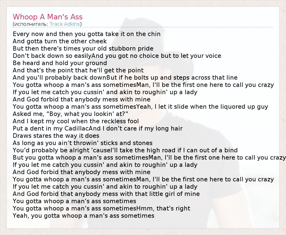 А как ты думаешь, о чем песня "Whoop A Man's Ass" ?