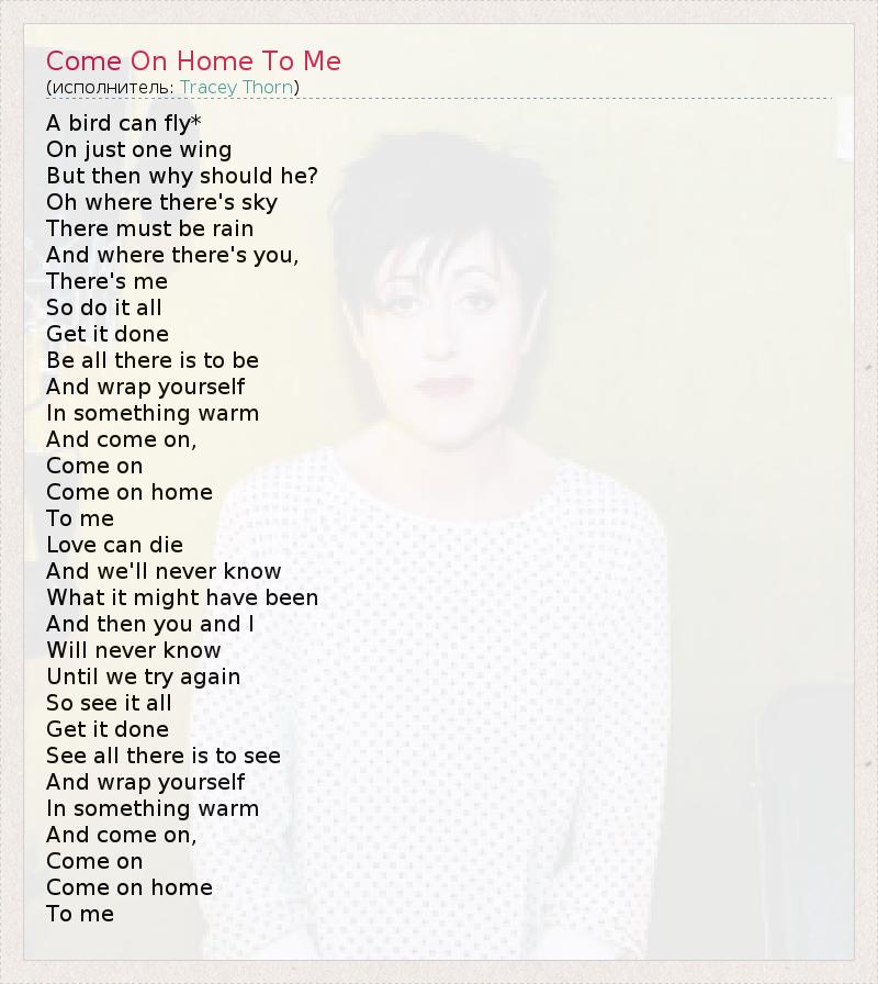 А как ты думаешь, о чем песня "Come On Home To Me" ?