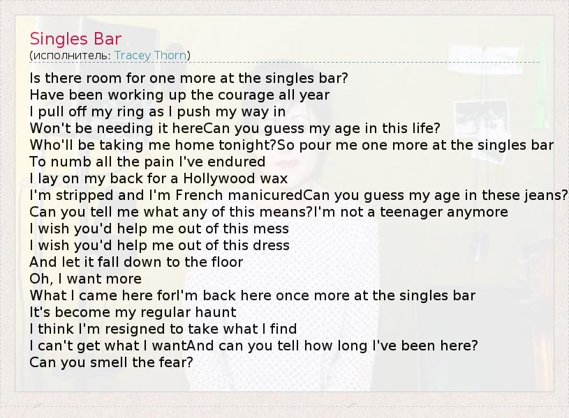 А как ты думаешь, о чем песня "Singles Bar" ?