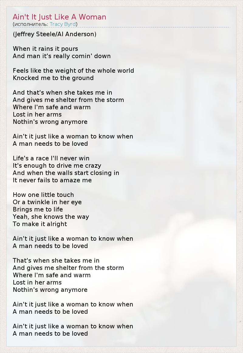 А как ты думаешь, о чем песня "Ain't It Just Like A Woman" ?