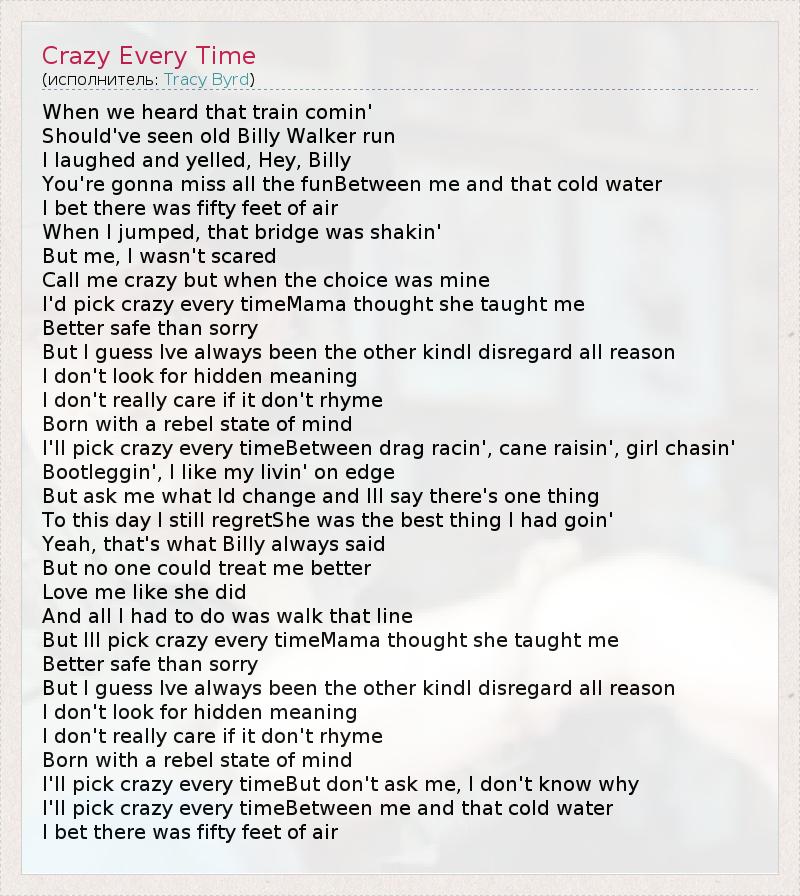 А как ты думаешь, о чем песня "Crazy Every Time" ?