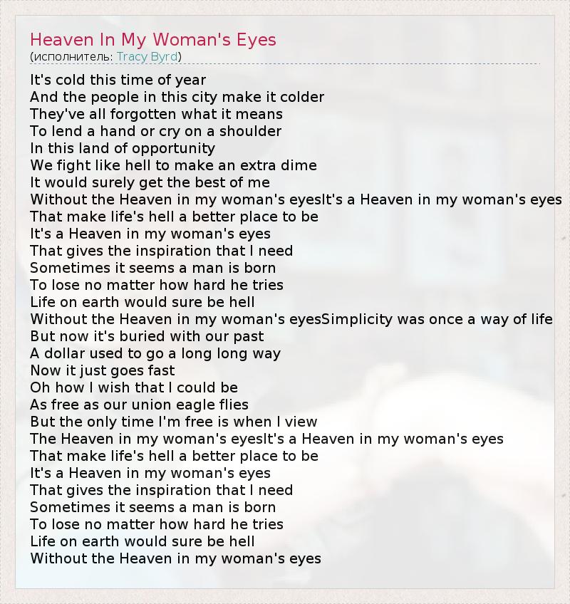 Without the Heaven in my woman's eyesIt's a Heaven in my woman's eyes