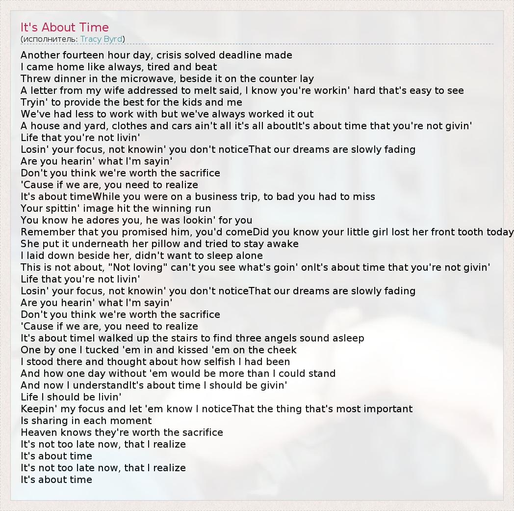 А как ты думаешь, о чем песня "It's About Time" ?