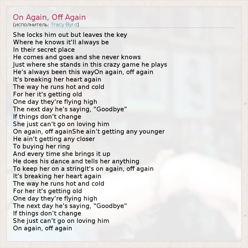 А как ты думаешь, о чем песня "On Again, Off Again" ?