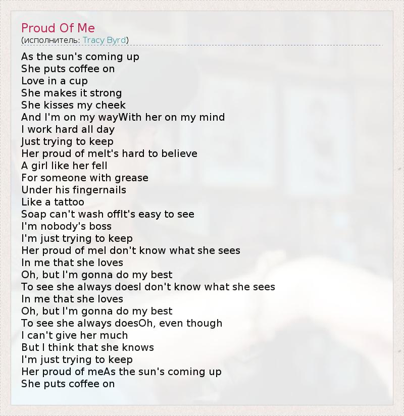 А как ты думаешь, о чем песня "Proud Of Me" ?