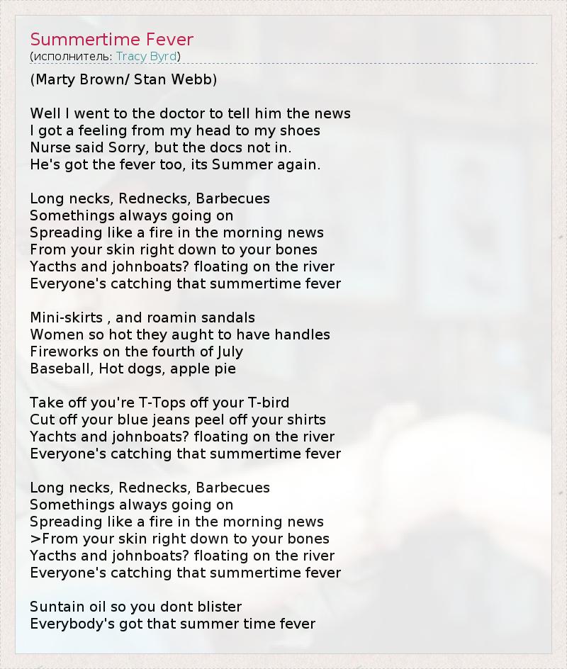 А как ты думаешь, о чем песня "Summertime Fever" ?