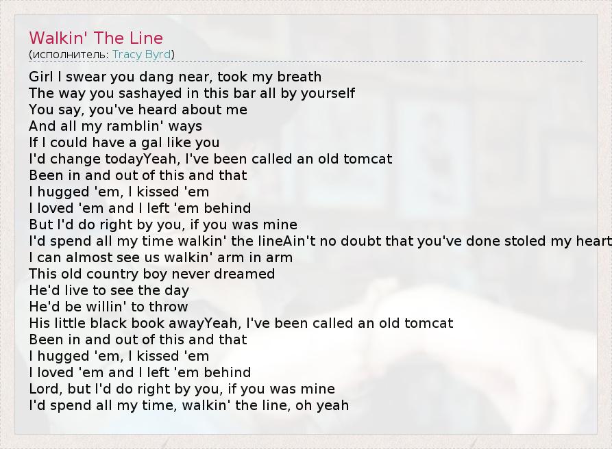 А как ты думаешь, о чем песня "Walkin' The Line" ?