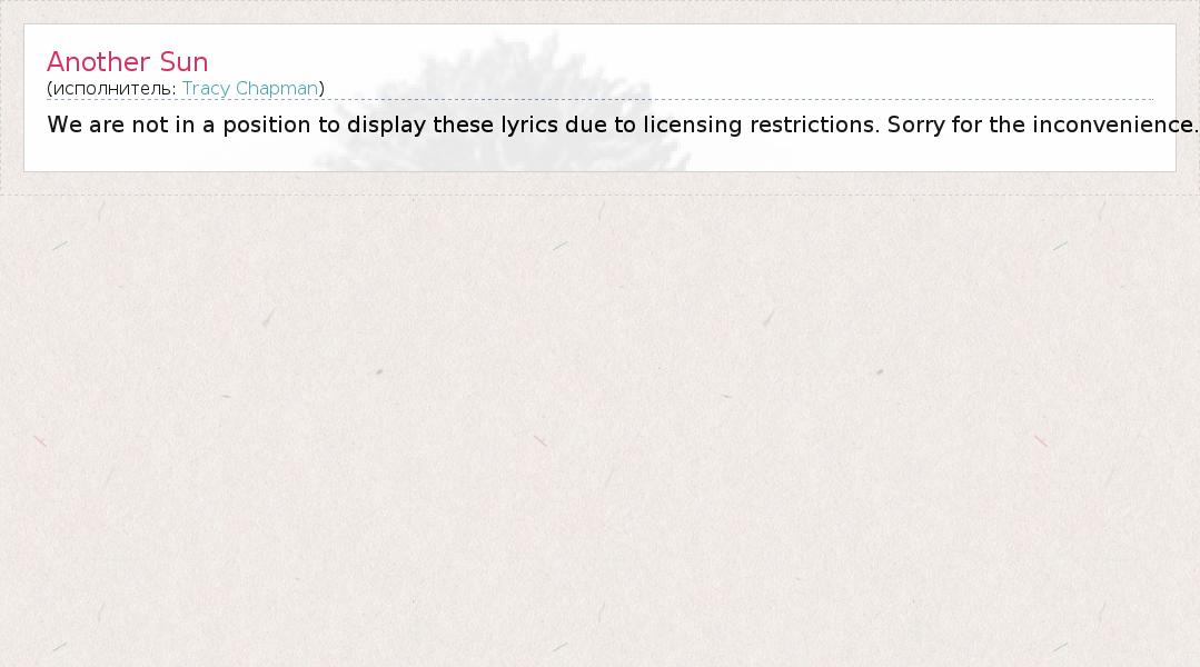 We are not in a position to display these lyrics due to licensing restrictions. Sorry for the inconvenience.