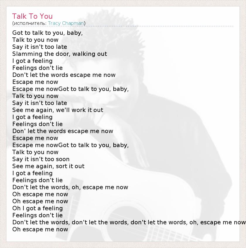 Escape me nowGot to talk to you, baby,