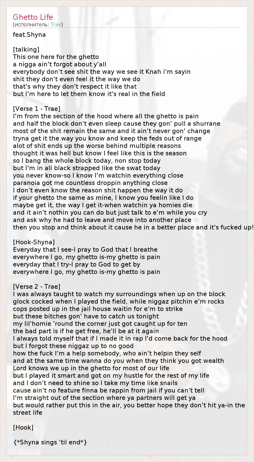 А как ты думаешь, о чем песня "Ghetto Life" ?
