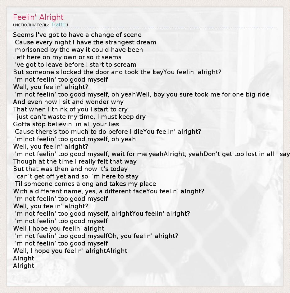 А как ты думаешь, о чем песня "Feelin' Alright" ?