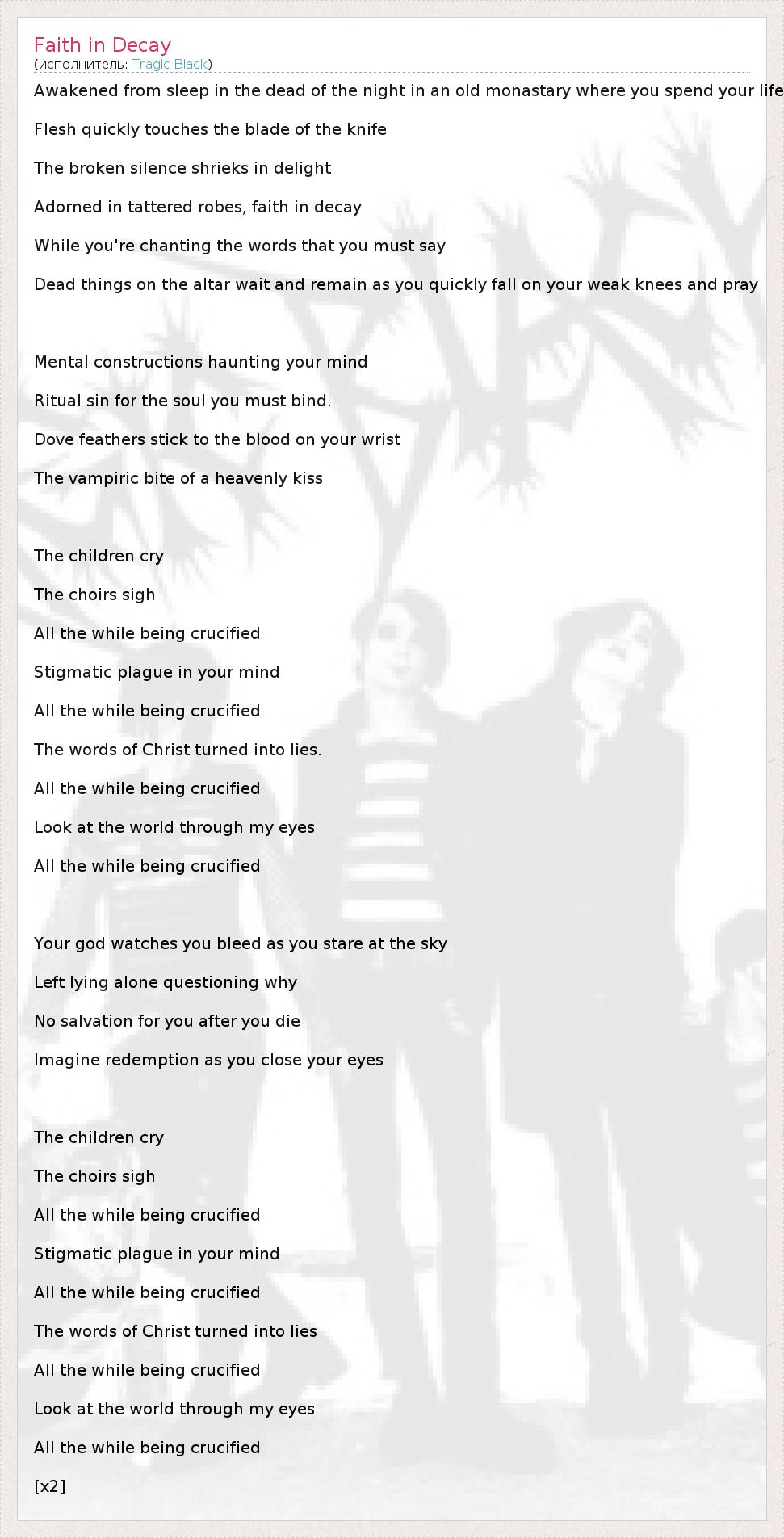 А как ты думаешь, о чем песня "Faith in Decay" ?