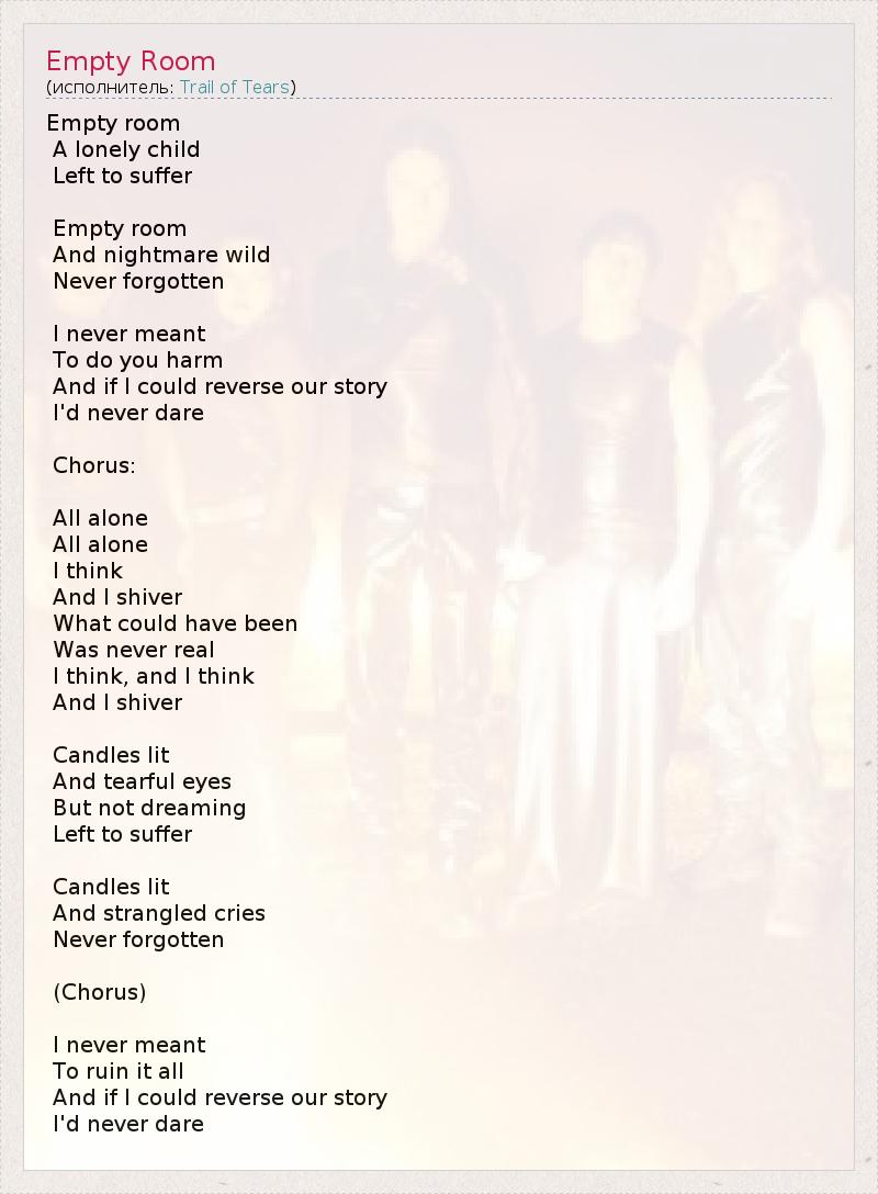 Это интересно:Trail of Tears — это норвежская готик-метал-группа, образованная в 1994 году под именем Natt (норв. "В течение ночи"). Сменив в 1997 году название на Trail of Tears, они сменили стиль игры и состав.Trail of Tears сочетают мужской дет-граул с сопрано вокалистки, в сопровождении клавишных инструментов. К 2010 году они выпустили в сумме 6 альбомов, последний из которых Bloodstained Endurance... продолжение