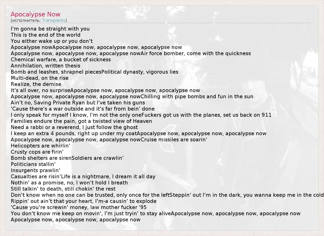 А как ты думаешь, о чем песня "Apocalypse Now" ?