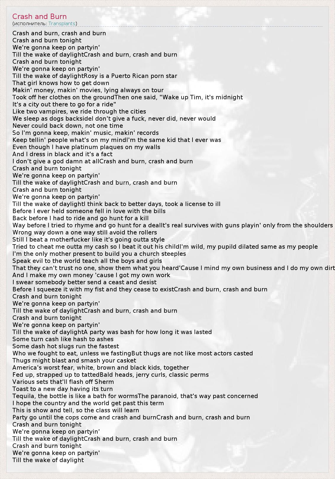 А как ты думаешь, о чем песня "Crash and Burn" ?