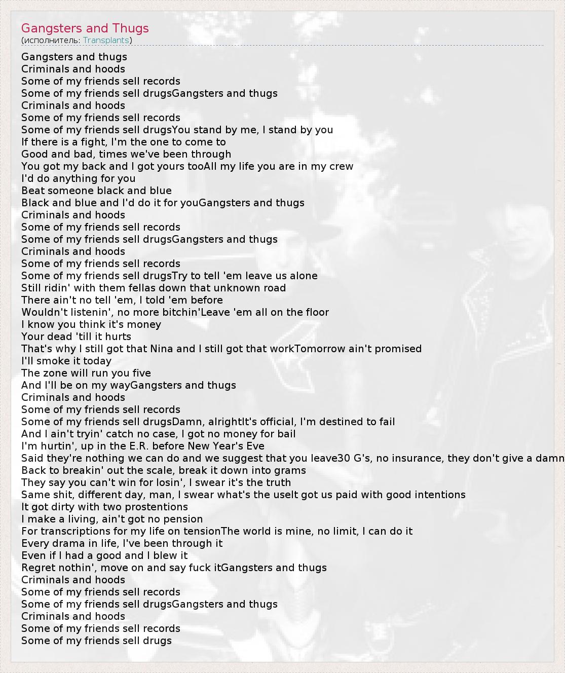 А как ты думаешь, о чем песня "Gangsters and Thugs" ?