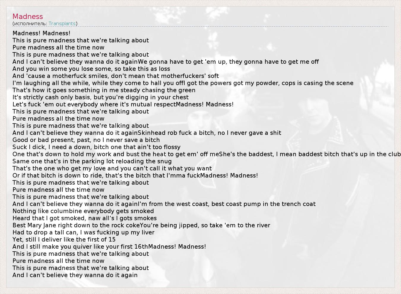 А как ты думаешь, о чем песня "Madness" ?