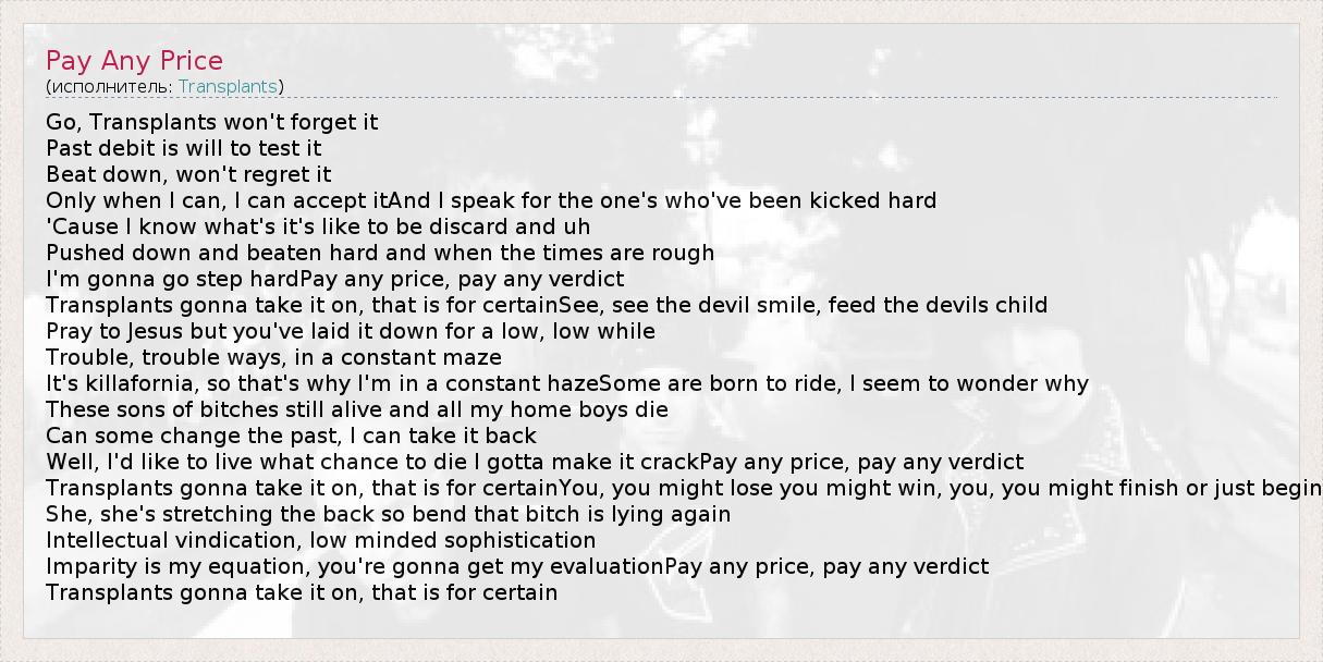 А как ты думаешь, о чем песня "Pay Any Price" ?