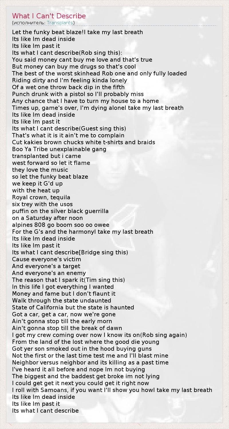 А как ты думаешь, о чем песня "What I Can't Describe" ?